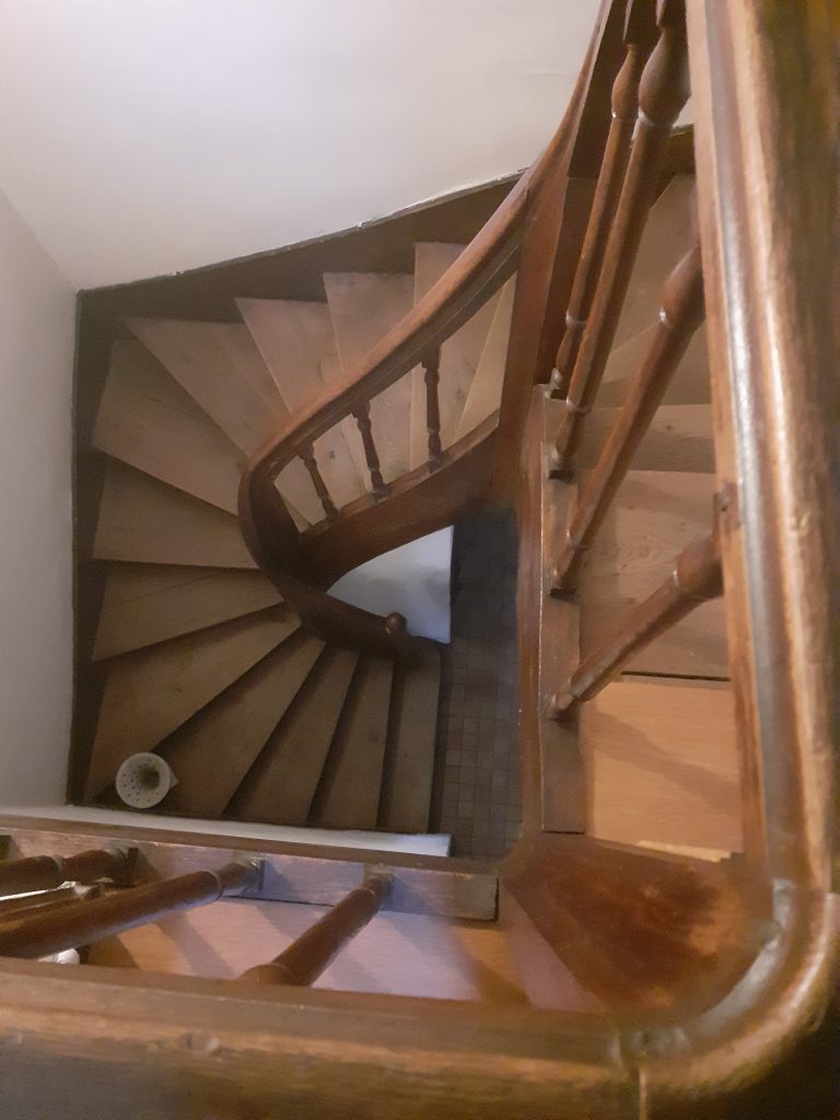 • Sacrebleu !! Le langage de notre Pèlerin semble ici s’exonérer de tout académisme et se vriller à l’envi, en des circonvolutions qui n’ont d’égal que le cheminement tortueux de l’escalier hélicoïdal menant à sa mansarde.