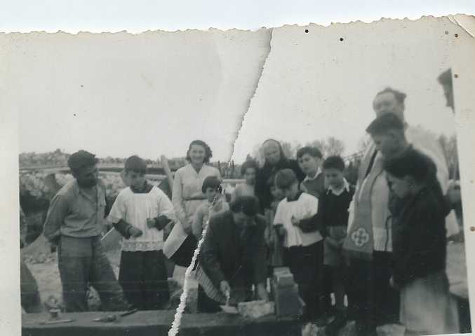 Notre présence comme enfants de chœur, Jean et moi, dans notre tenue de cérémonie en 1959 lors de la bénédiction-commémoration pour immortaliser la construction du futur logis familial.
